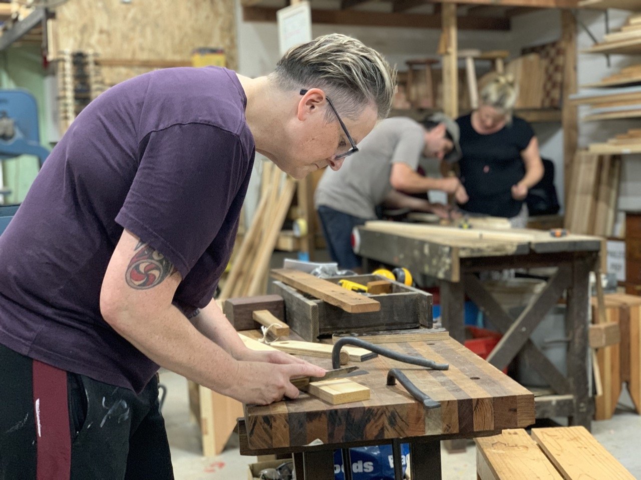 For those who want to continue their woodworking, repair, or crafting journey — but may not have the space or equipment — our Rent-a-Bench program offers access to a bench, tools, and an experienced facilitator to offer guidance as you go. Learning a craft takes time. The joy and the lessons come largely from the doing. That it happens in the service of keeping usable timber out of landfill makes it a win-win.